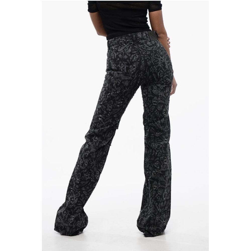 Off-White Flared Straight Leg Long Jeans with All-Over Graphic Print 2