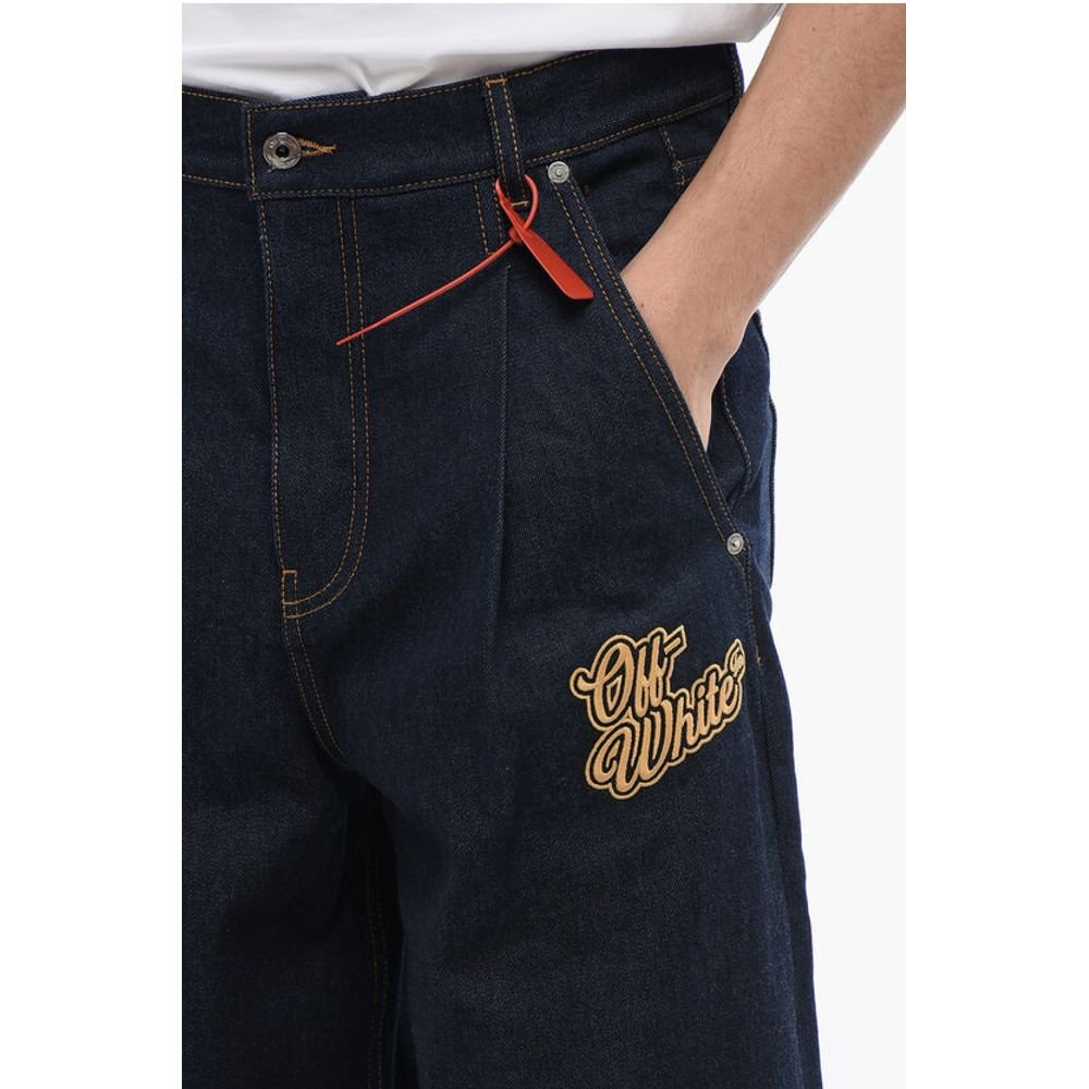 Off-White Single-Pleated Baggy Fit Jeans with Embroidered Logo 28cm