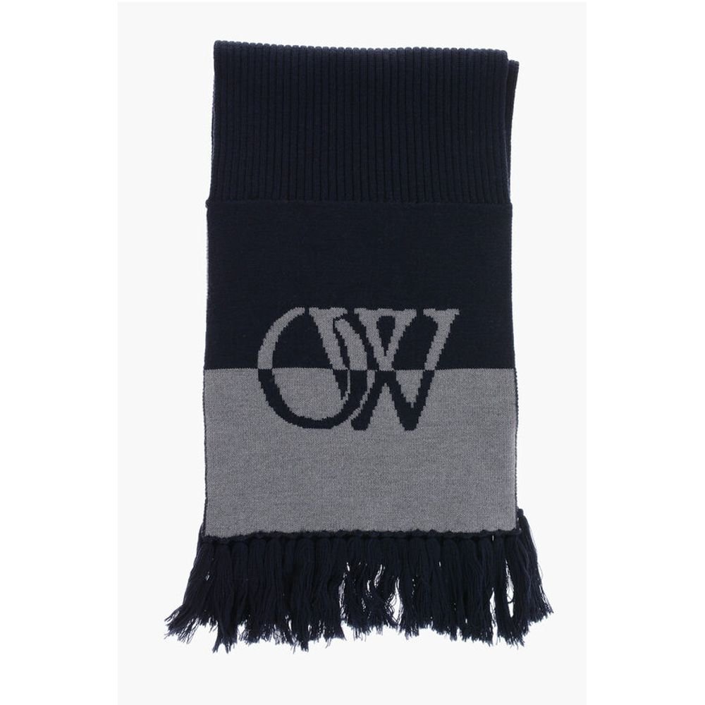 Off-White Two-Tone Virgin Wool Scarf with Fringes