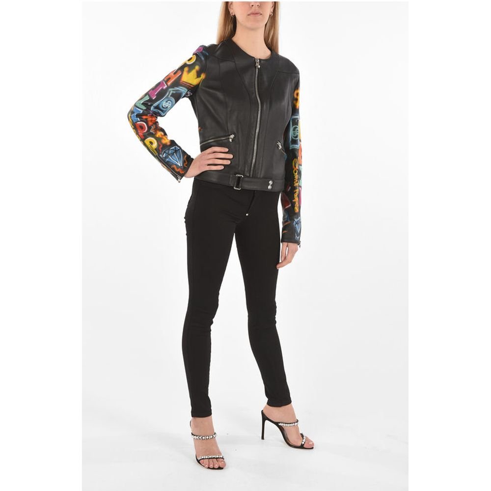 Philipp Plein COUTURE Leather Jacket GRAFFITI with Printed Sleeves