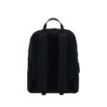 Re-Nylon backpack by Prada, handle on leather top, adjustable shoulder straps, padded mesh back, zippered top closure, interior slit pocket with zipper closure, interior patch pocket, two exterior zippered pockets, contrasting iconic monogram band patch on front.