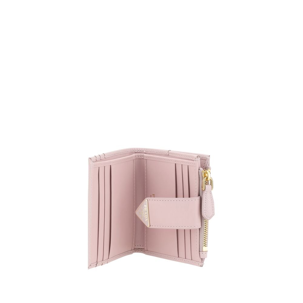 Prada’s leather Wallet is an elegant and functional accessory made of fine leather. The bifold model opens into two sections, offering excellent organization. The flap closure with snap button is embellished with a logoed triangular plaque, adding a distinctive touch. On the front panel, there are card slots, while inside are internal card slots, a bill compartment and a zippered welt pocket for coins. The iconic press-stamped monogram on the interior panel lends an additional detail of luxury and recognition.