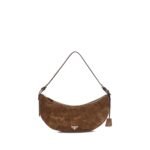 Prada’s Demi-Lune Shoulder Bag combines elegance and practicality in a refined design. The suede shoulder strap lends a sophisticated touch, while the famous metallic logo triangle on the front adds an iconic element. Featuring a detachable leather keychain accessory and a zipper closure, it is designed to accompany every moment of the day in style.