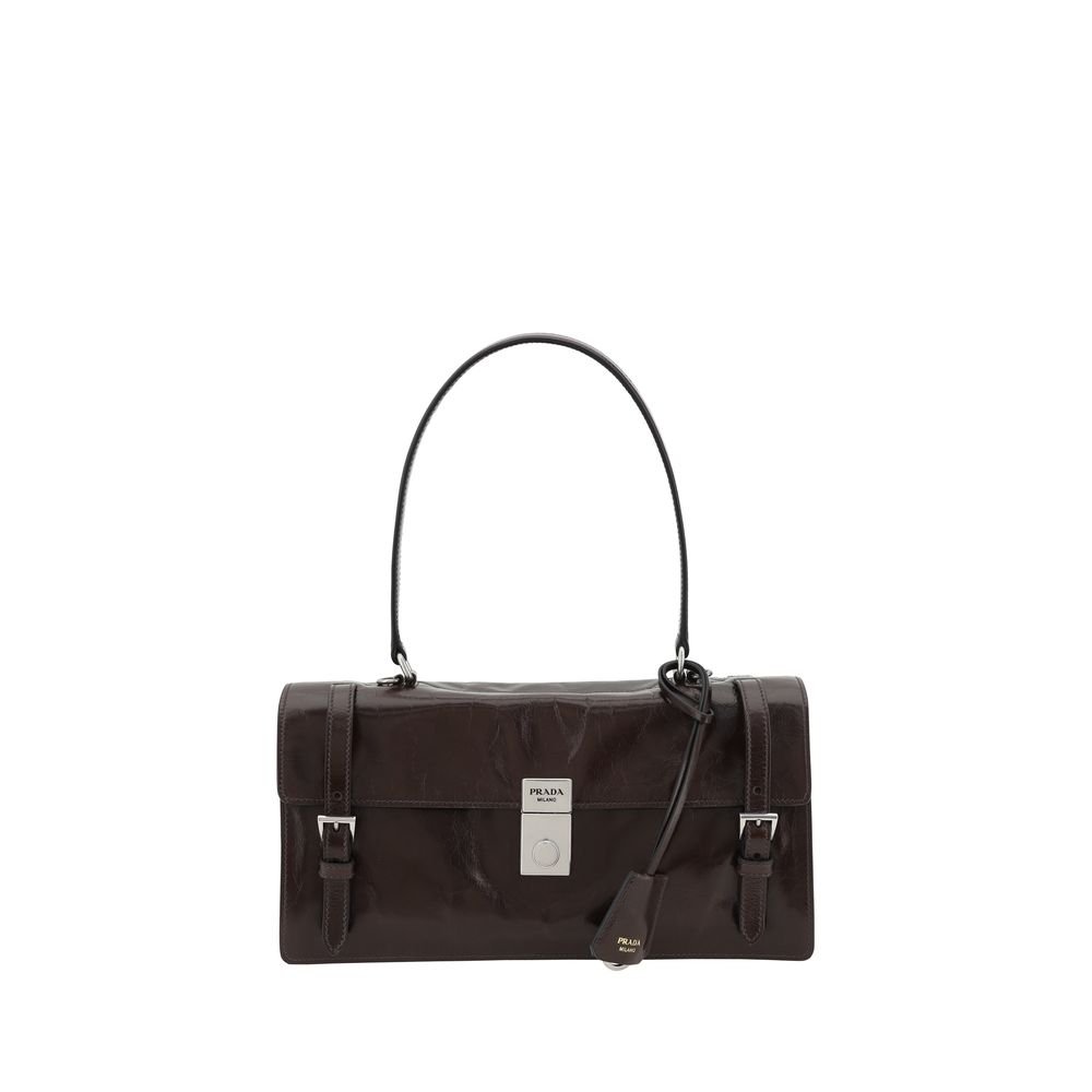 Prada’s leather Shoulder Bag is elegant and refined, with a flat handle that enhances the design. Made of polished leather, it features a front flap closure with a logoed clasp, a distinctive detail of the brand. Side buckles add a touch of style, while the external back pocket offers practicality. A sophisticated and versatile accessory perfect for any occasion.