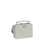Prada’s leather Shoulder Bag is an elegant and practical accessory made of fine leather. The top closure with a double-slider twist zipper provides security and ease of use. It has a single handle on top, convenient for carrying it by hand, and an adjustable and removable webbing shoulder strap, offering versatility and comfort. On the front, the iconic triangular enameled plaque with the brand’s logo stands out, a distinctive and recognizable detail. Inside, the bag features an internal welt pocket and single internal compartment, perfect for keeping items tidy.