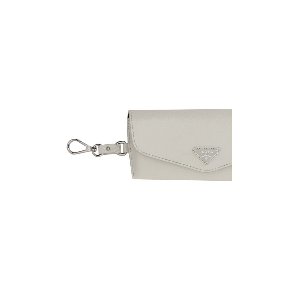Prada’s leather Eyeglass Case is a stylish and functional accessory. It features a front flap closure equipped with a magnetic button, ensuring a secure and practical closure. Applied to the front is the iconic logoed triangular plaque, a distinctive symbol of the brand. It also features a carabiner clip, allowing it to be easily attached to bags or backpacks for convenient and versatile carrying.