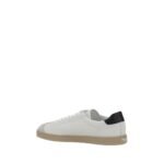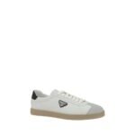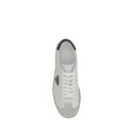Prada’s leather Sneakers are a perfect example of sporty elegance. With a round suede toe, they offer a sophisticated and contemporary look. The lace-up closure ensures a secure and comfortable fit, while the iconic triangular logo plaque on the outside adds a distinctive brand touch. The contrasting flat sole lends a bold, modern effect, while the branded insole completes the design, making these sneakers a must-have for those seeking style and comfort in one accessory.