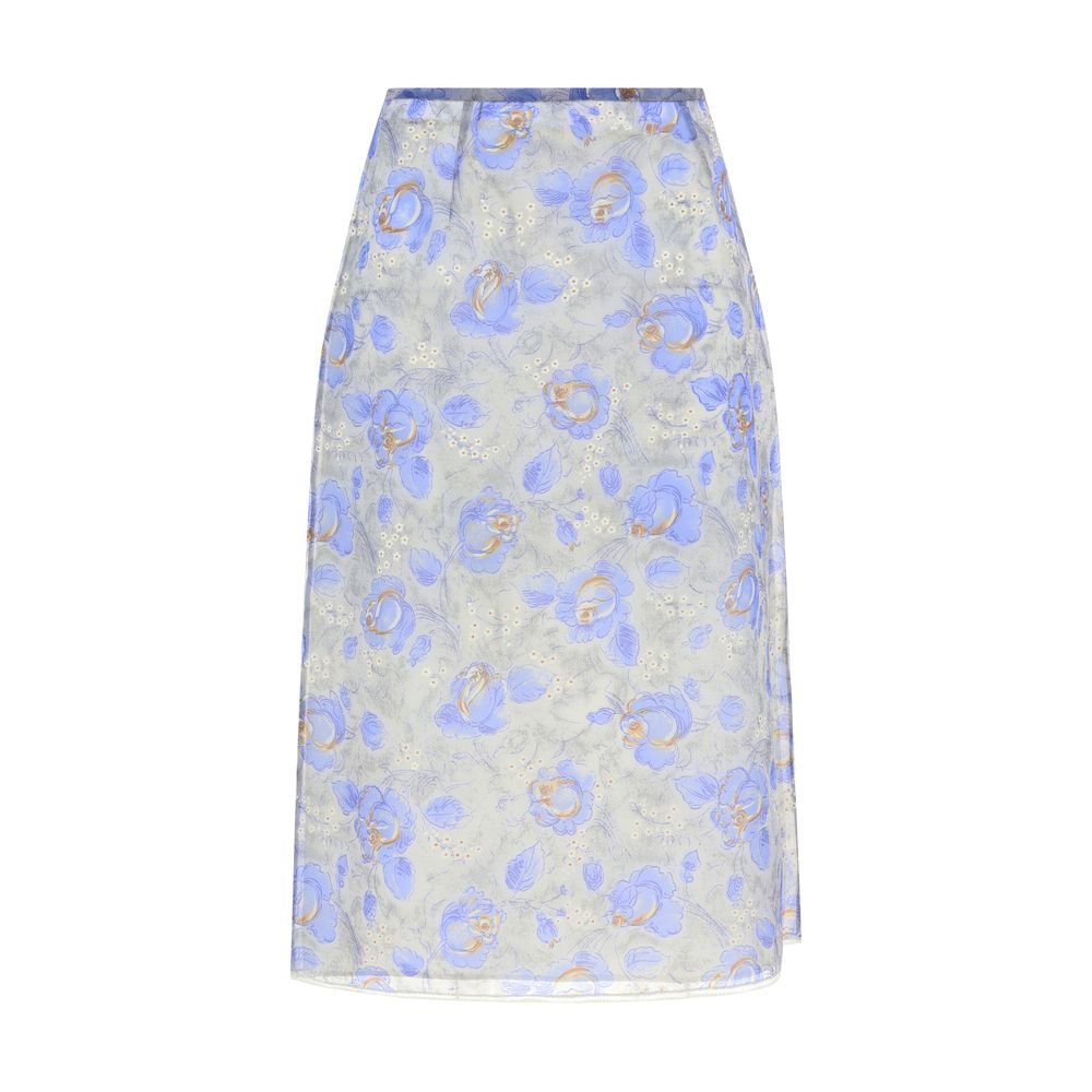 Skirt by Prada, closure by buttons in side panel, semi-transparent fabric design, all-over repeated floral pattern, skirt fitted with petticoat, regular fit.