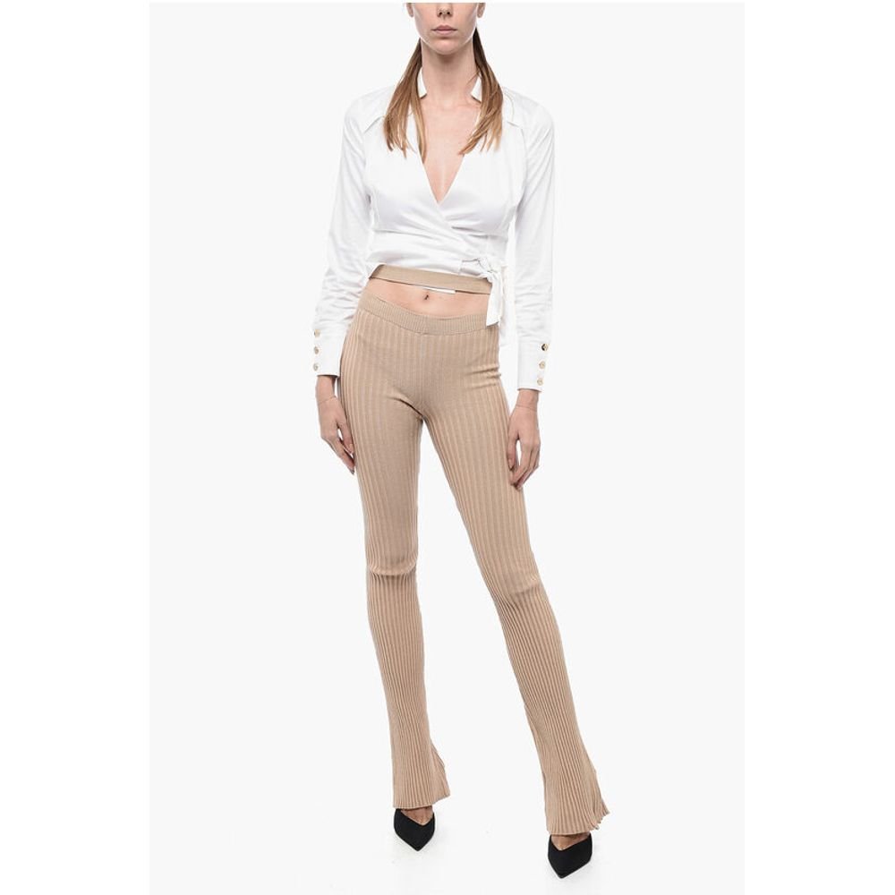 Ribbed Flared Pants with Cut Out Detail