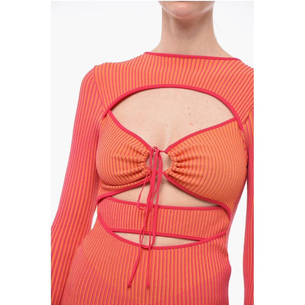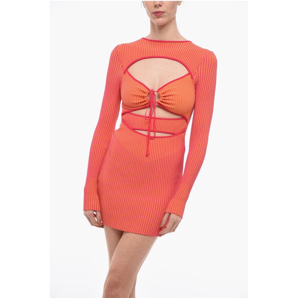 Ribbed Knitted Mini Dress with Cut Out Detail