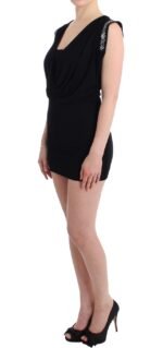 Roccobarocco Elegant Sleeveless Black Mini Dress with Gold Details