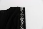 Step out in sophistication with our stunning sleeveless dress, brand new with tags, direct from Roccobarocco. This chic black dress, adorned with sparkling silver details, offers a perfect blend of modern elegance and timeless style. The draped neckline and above-the-knee length make for a striking silhouette, while the silver metal accents add a touch of glamour, complete with subtle logo details for that mark of excellence.