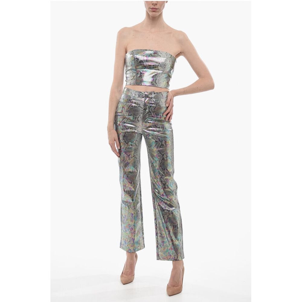 Rotate Snake Effect Straight Leg 5 Pockets Pants