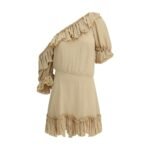 The Saint Laurent One-Shoulder silk Dress is a masterpiece of elegance and originality. The asymmetric silhouette, with a single exposed shoulder, gives a bold and sophisticated touch, while the short poet sleeves, enriched by a flounced pleat finish, add volume and movement. The side zip closure ensures a perfect fit. This dress combines the luxury of silk with a modern and feminine design, perfect for special evenings or elegant events, where comfort merges with a timeless style.