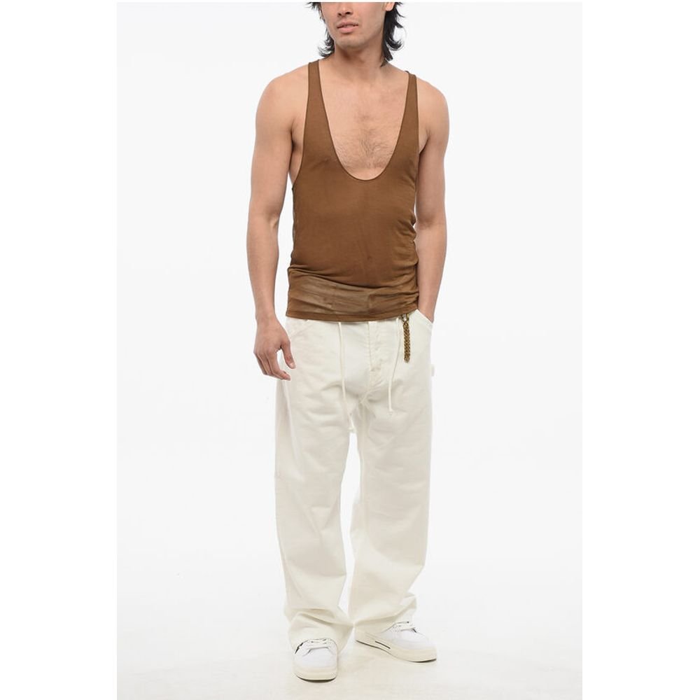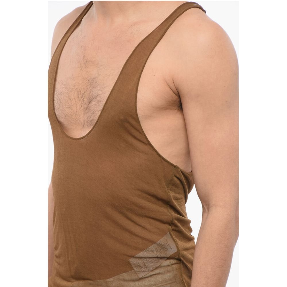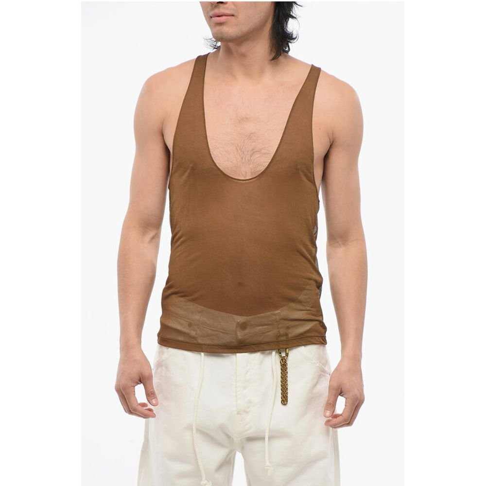 Saint Laurent Viscose Sheer Tank Top with Deep Neckline