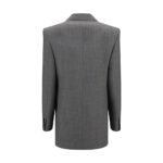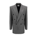 Saint Laurent’s wool twill Blazer is an iconic piece that combines classic tailoring and contemporary style. Double-breasted buttoned construction and peaked lapels lend a bold elegance, while padded epaulettes give a structured, refined silhouette. On the front, two flap welt pockets and a profiled breast pocket add sophisticated and functional details. The pure silk lining ensures comfort and smoothness, while the double back slit completes the design with a dynamic touch.