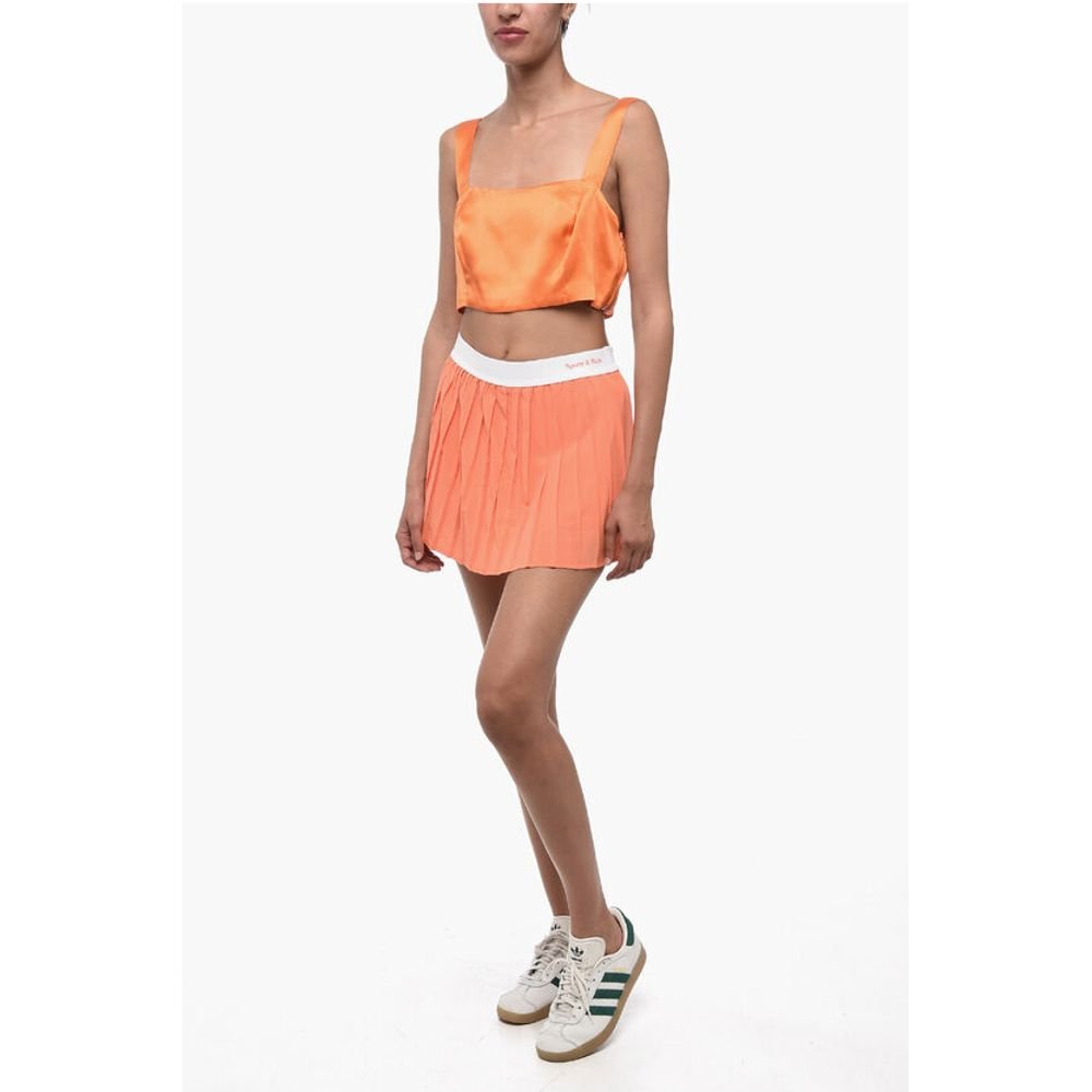 Sporty & Rich Pleated Mini Skirt with Logoed Elastic Band