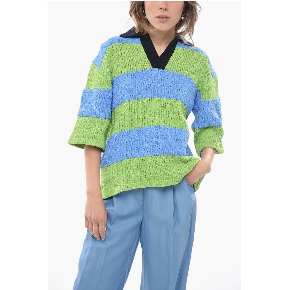 SUNNEI Two-Tone Crochet Sweater with Polo Neck