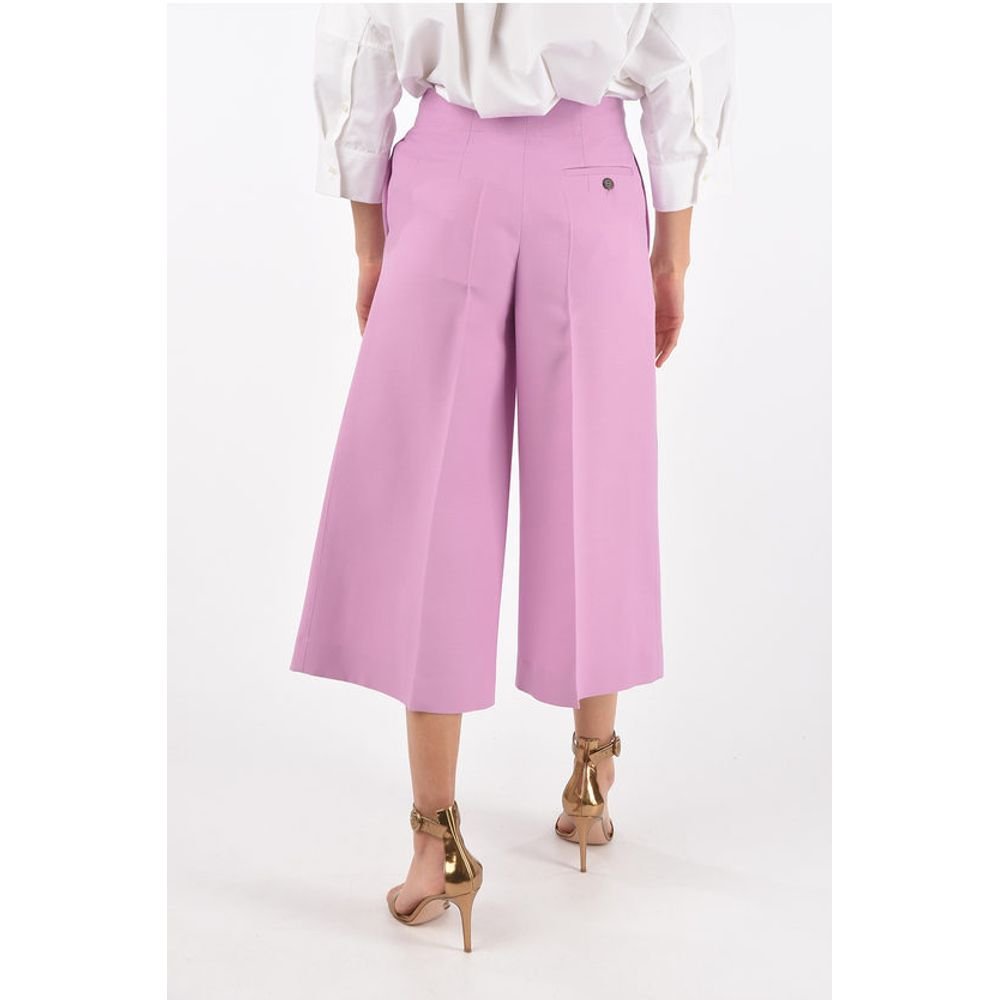 Super Blond Single-pleated Wool and Silk Flared Gaucho Pants