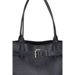 Tom Ford’s Large Audrey Tote Bag is a sophisticated accessory with a strong character. Equipped with two round handles for elegant carry by hand or on the arm, it features an interior magnet closure that provides practicality and security. The distinctive element is the external buckle that runs through the bag’s silhouette, adding a structured and modern touch. Completing the design is the brand’s iconic signature printed on the front, an emblem of style and sophistication.