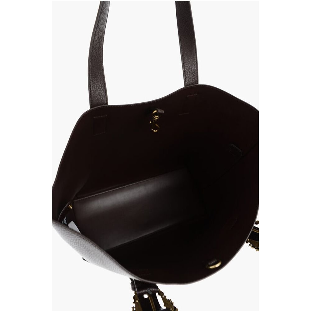 Versace JEANS COUTURE Textured Faux Leather Tote Bag with Golden Buc
