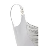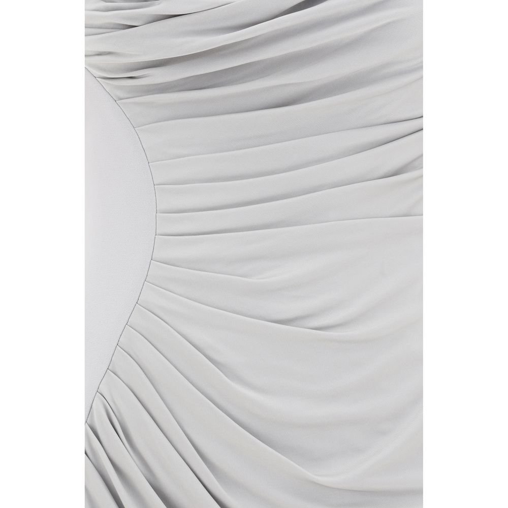 Versace’s draped mini Dress is a sensual and elegant garment, featuring a figure-flattering sleeveless design. One of the straps, decorated with the iconic Medusa plaque, adds a distinctive and powerful touch, a symbol of the fashion house. The side zipper closure ensures a perfect fit, while the draped design gives movement and fluidity to the fabric, creating a sophisticated and dynamic effect. A dress that combines the power of the brand with timeless elegance.