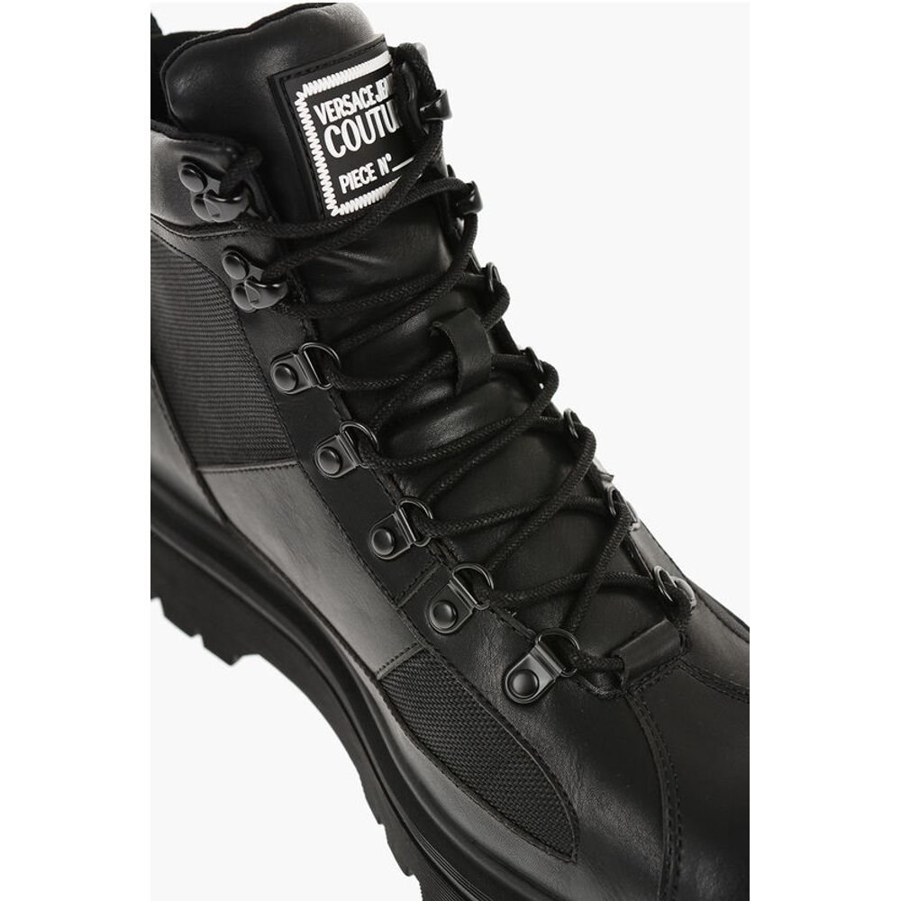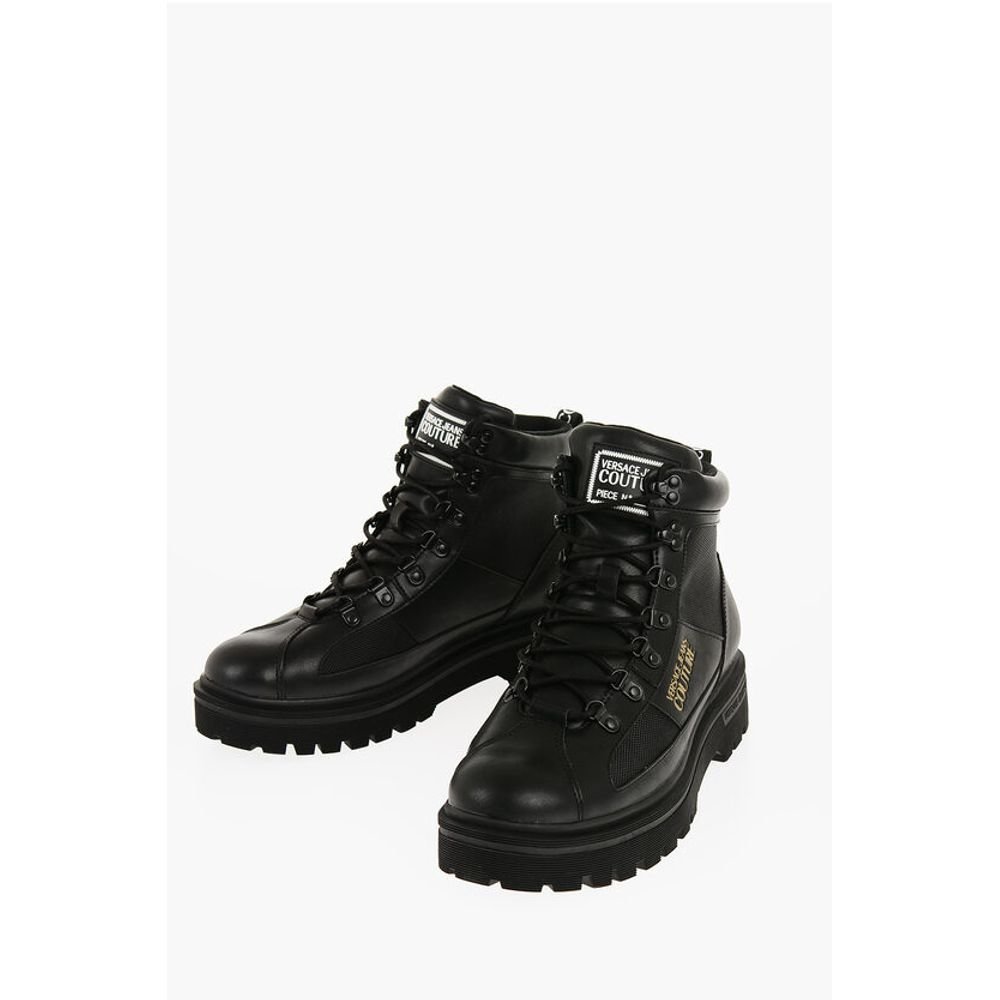 Versace JEANS COUTURE Leather and Fabric SYRIUS Combat Boots with Co