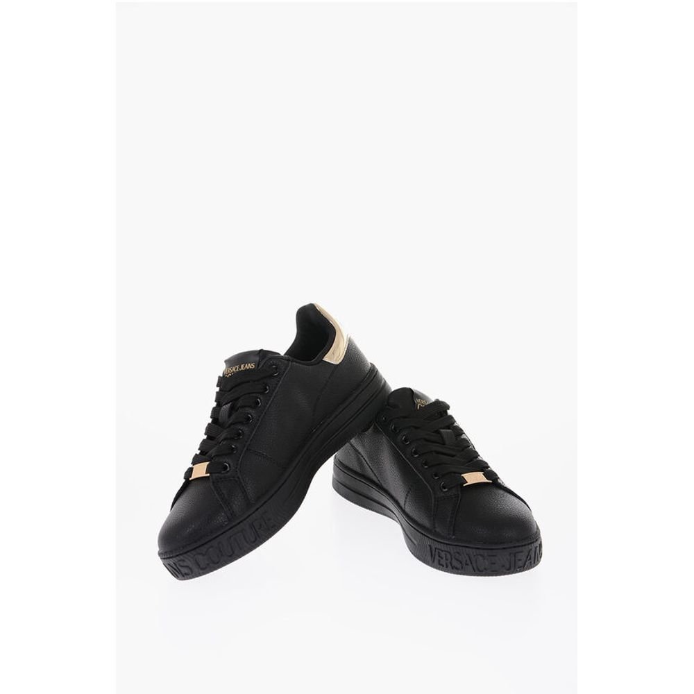 Versace JEANS COUTURE Textured Leather Low-Top Sneakers with Golden