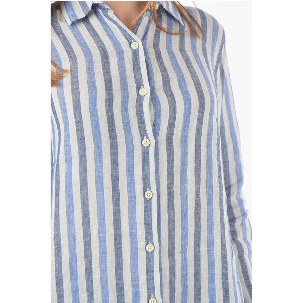 Woolrich Awning Striped Linen Shirt with Buttons on the Sleeve