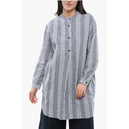 Woolrich Balanced Stripe Organic Cotton Shirt with Mandarin Collar