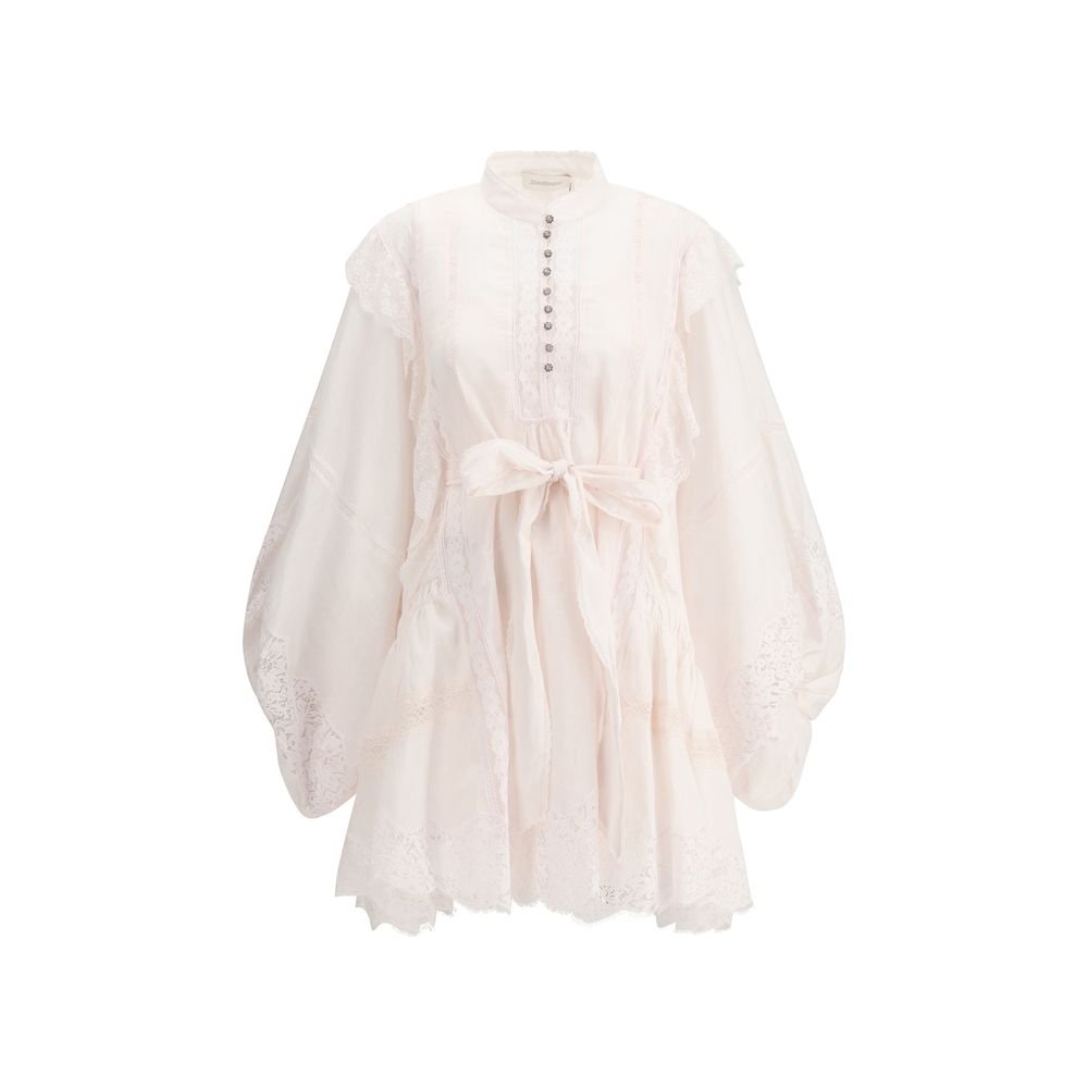 The Crush Lace Billow cotton Mini Dress by Zimmermann is a romantic and sophisticated piece perfect for looks with delicate elegance. Featuring a high collar with lace trim and a mid-bust closure with jeweled buttons, it has balloon sleeves with elasticized cuffs and ruffle details on the shoulders. The matching knotted and removable ribbon at the waist enhances the silhouette, while all-over applied lace details enrich the texture. Complemented by a matching slip, it comes in a monochrome pattern with a regular fit.