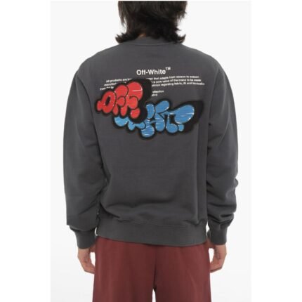Off-White SEASONAL Slim Fit Crew-neck Sweatshirt with Contrasting Deta