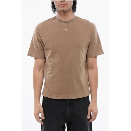 Off-White Solid Color Cotton Crew-neck T-shirt
