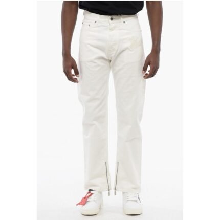 Off-White Stretch Denim Jeans with Ankle Zip 20cm