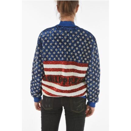 Philipp Plein COUTURE All-Over Sequine and Crystal AMERICA Bomber Jacket