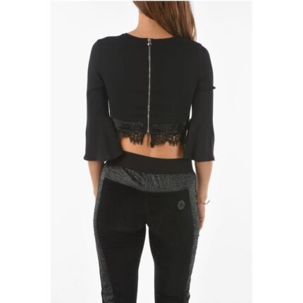 Philipp Plein COUTURE Lace Detail CAUSE YOU DON’T THINK Crop Top