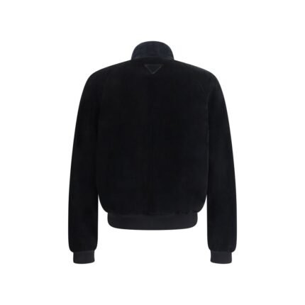 Prada’s Bomber Jacket is a sleek and contemporary piece made of suede for a sophisticated look. It features a fabric