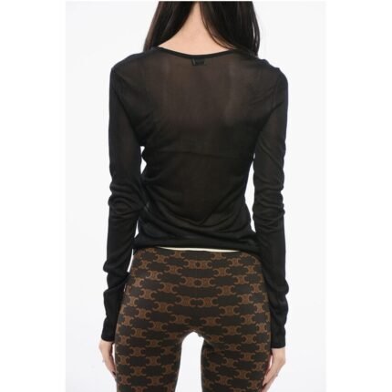 Saint Laurent Semi-sheer Sweater with Deep-U Neckline