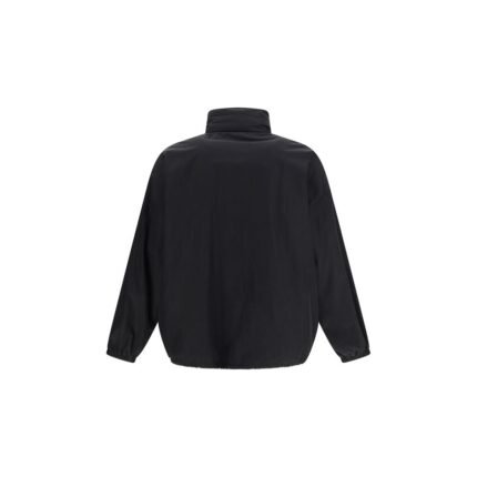 Saint Laurent’s Waterproof Jacket features a high collar with a zipper for storing the hood. The front closure is a