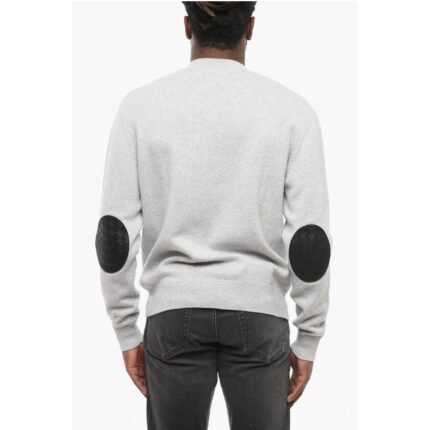 Bottega Veneta Crew Neck Cashmere Blend Sweater with Leather Patches