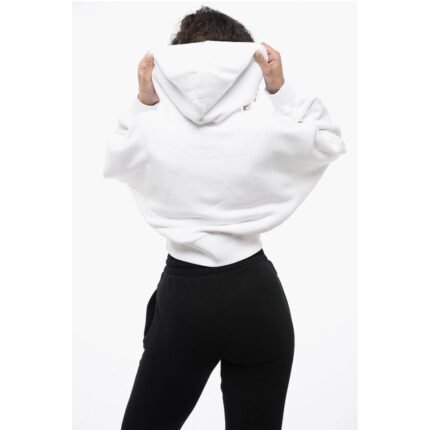 Off-White Brushed Cotton Cropped Hoodie with Rhinestone Embellished Lo