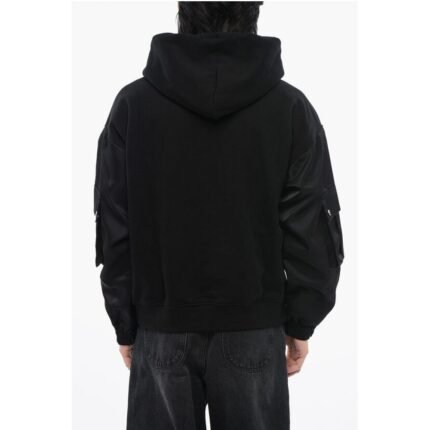 Off-White Brushed Cotton Hoodie With Bomber Sleeves
