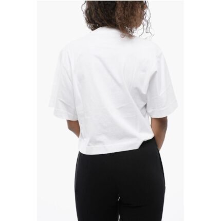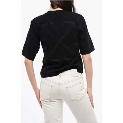 Off-White Cropped Crew-neck T-shirt with Bck Maxi Embroidery