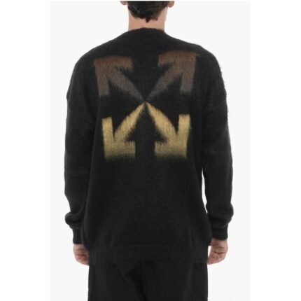 Off-White Crew-neck Fluffy Sweater with Contrasting Logo