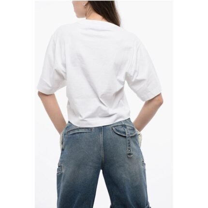 Off-White Cropped Crew-neck T-shirt with Frontal Print