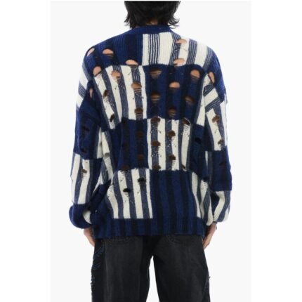 Off-White Distressed Effect Wool Cardigan With Beads Detail