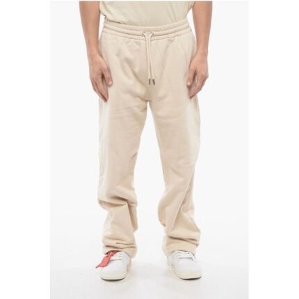 Off-White Embroidered Brushed Cotton Joggers