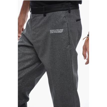 Off-White Glittery Tailoring Pants with Satin Detailing